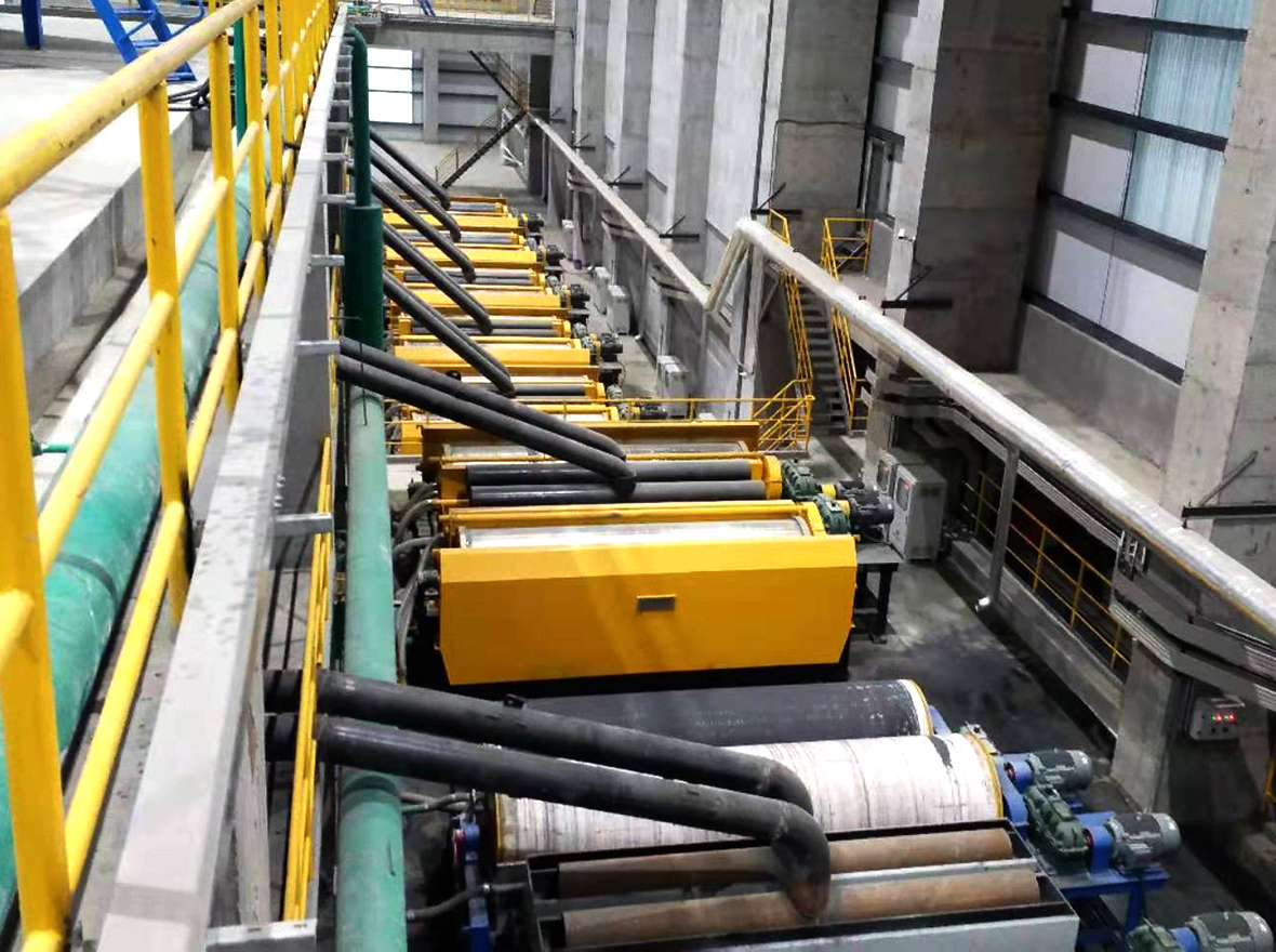 ◆设有多级漂洗水和顶部水帘冲洗装置,可对滚筒表面吸附的矿物进行充分漂洗,矿物夹杂少;